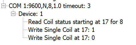 Let’s read the first relay on our module (unit address is 1 by default, the relay is coil 17):