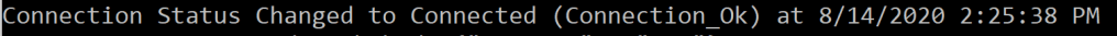Console.WriteLine($"Connection Status Changed to {status} ({reason}) at {DateTime.Now}");