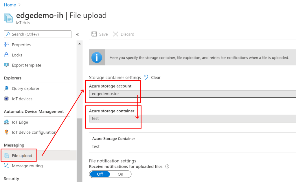 - You have to affiliate a blob storage container to the IoT Hub before this can work