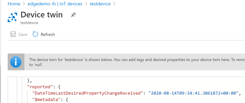 Console.WriteLine("The Devicetwin is forced retrieved");