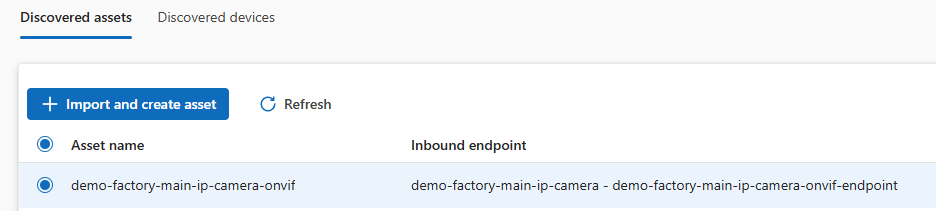 So, on the Discovery page, select the radio button of our ‘discovered asset’ and hit the import and create asset’ button.