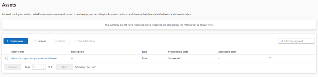 Refresh the Assets page once our asset is created and synchronized with the edge:
