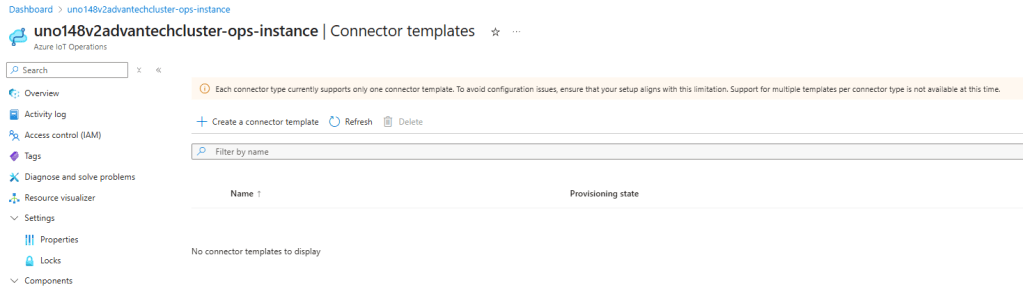 Open the connector templates page within the Azure IoT Operations instance. Probably, no template is active yet: