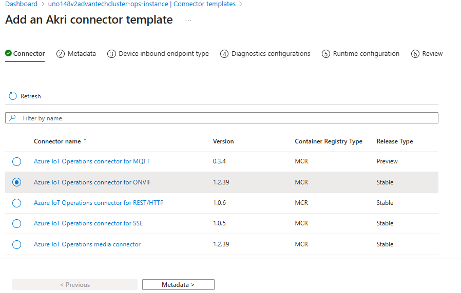 Select that ONVIF connector and move to the Metadata page.