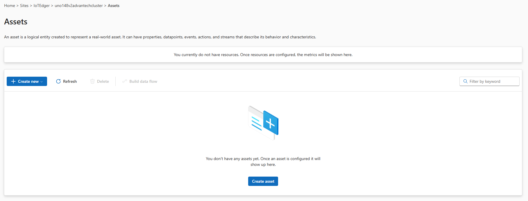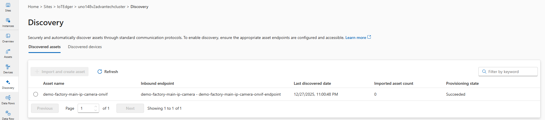 Refresh the Assets page once our asset is created and synchronized with the edge: