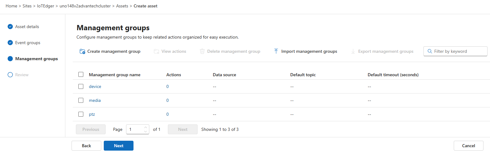On the Management groups page, we should be able to configure the actions, such as pan, tilt, and zoom, that you want to use to control the ONVIF camera.
