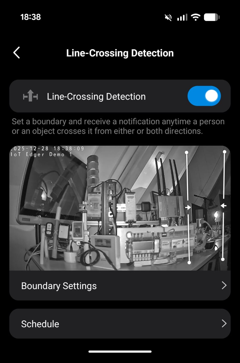 How about this? We are now alerted when people enter and exit my demo factory via an IP camera and Azure IoT Operations. Or when they cross the line from the secure area to the machine area? A notification is raised, ready to take action on.