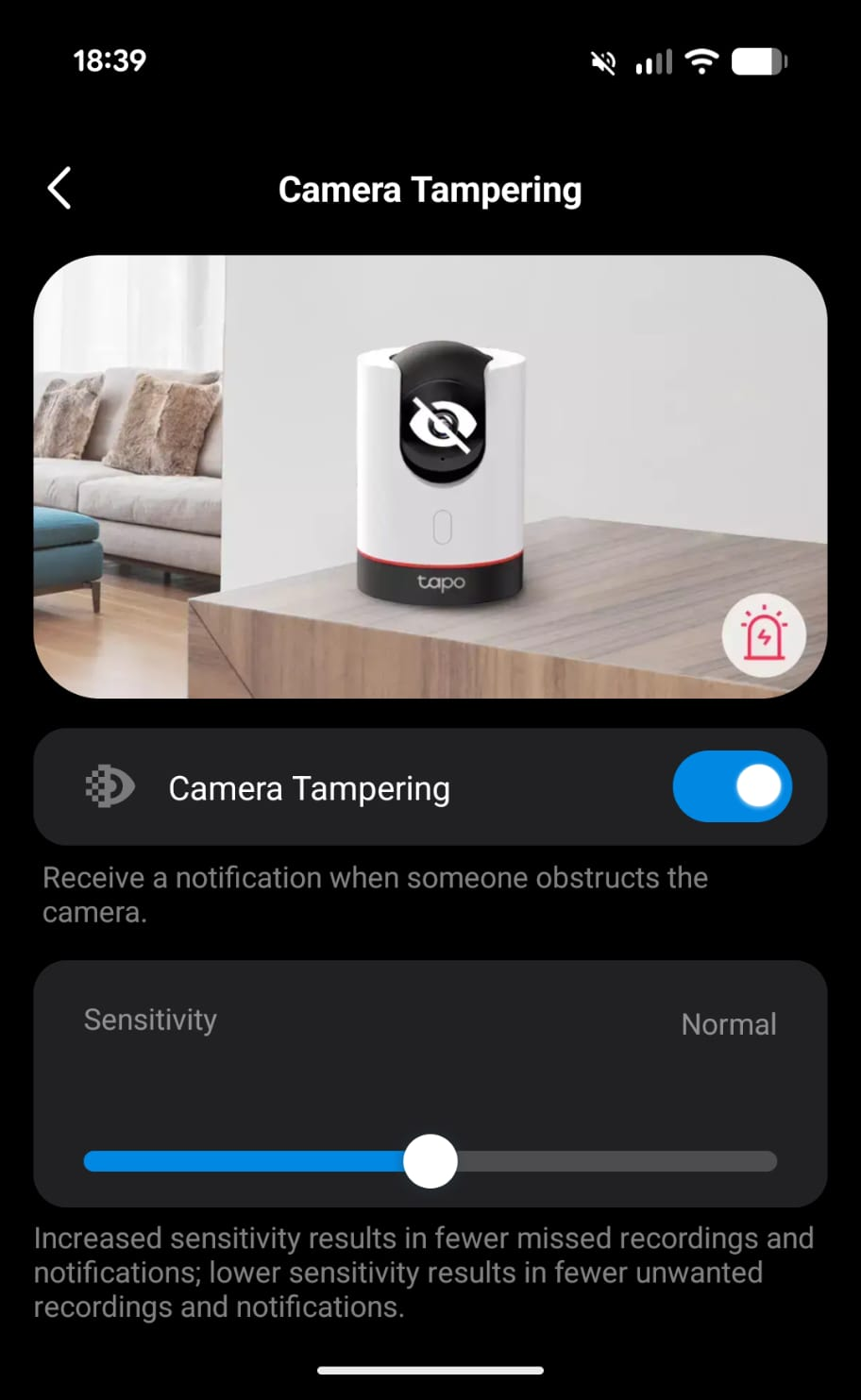 By blinding the camera or by covering it, the tamper event is raised: