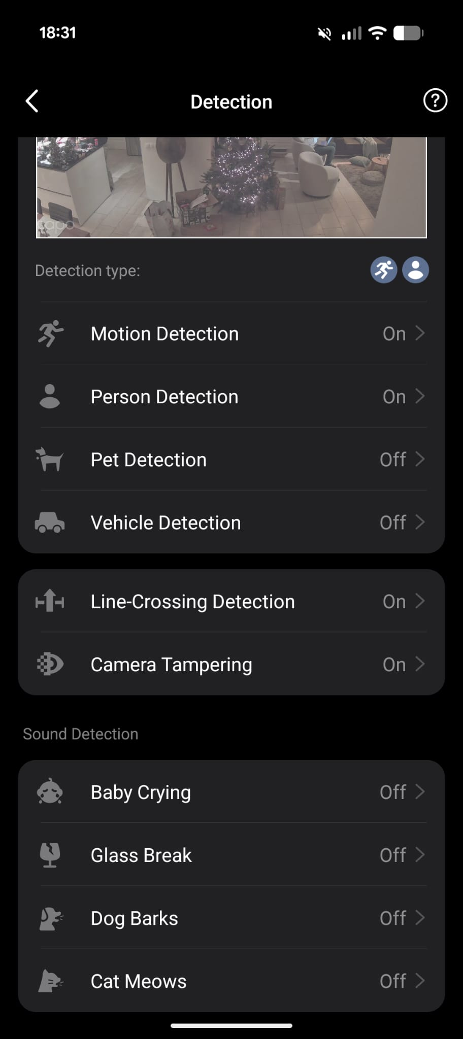 As you can see, this Tapo IP camera supports a large list of useful events (and less useful events; I do not own a dog):
