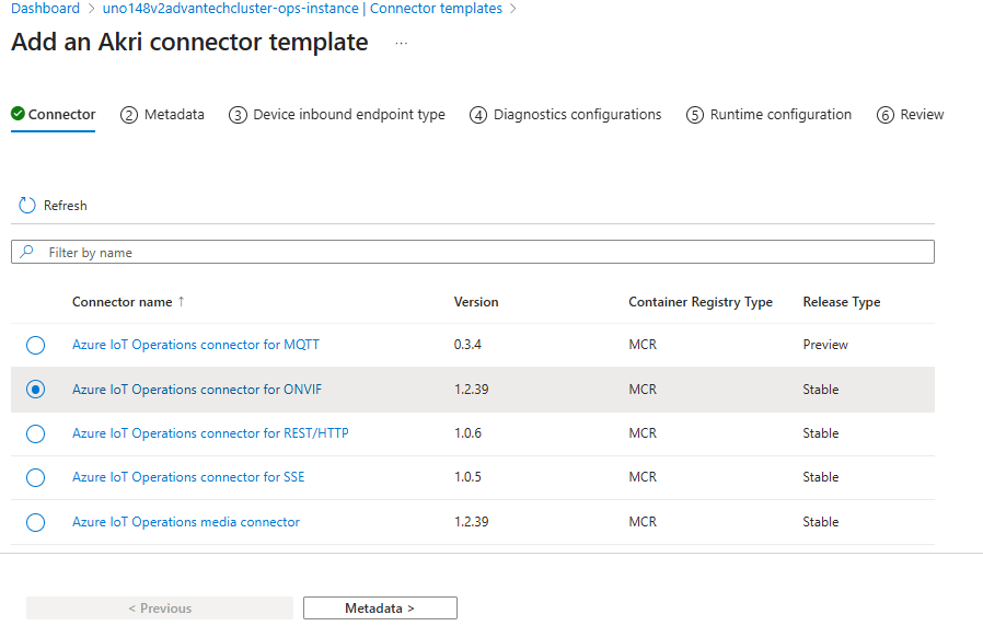 Select that ONVIF connector and move to the Metadata page.