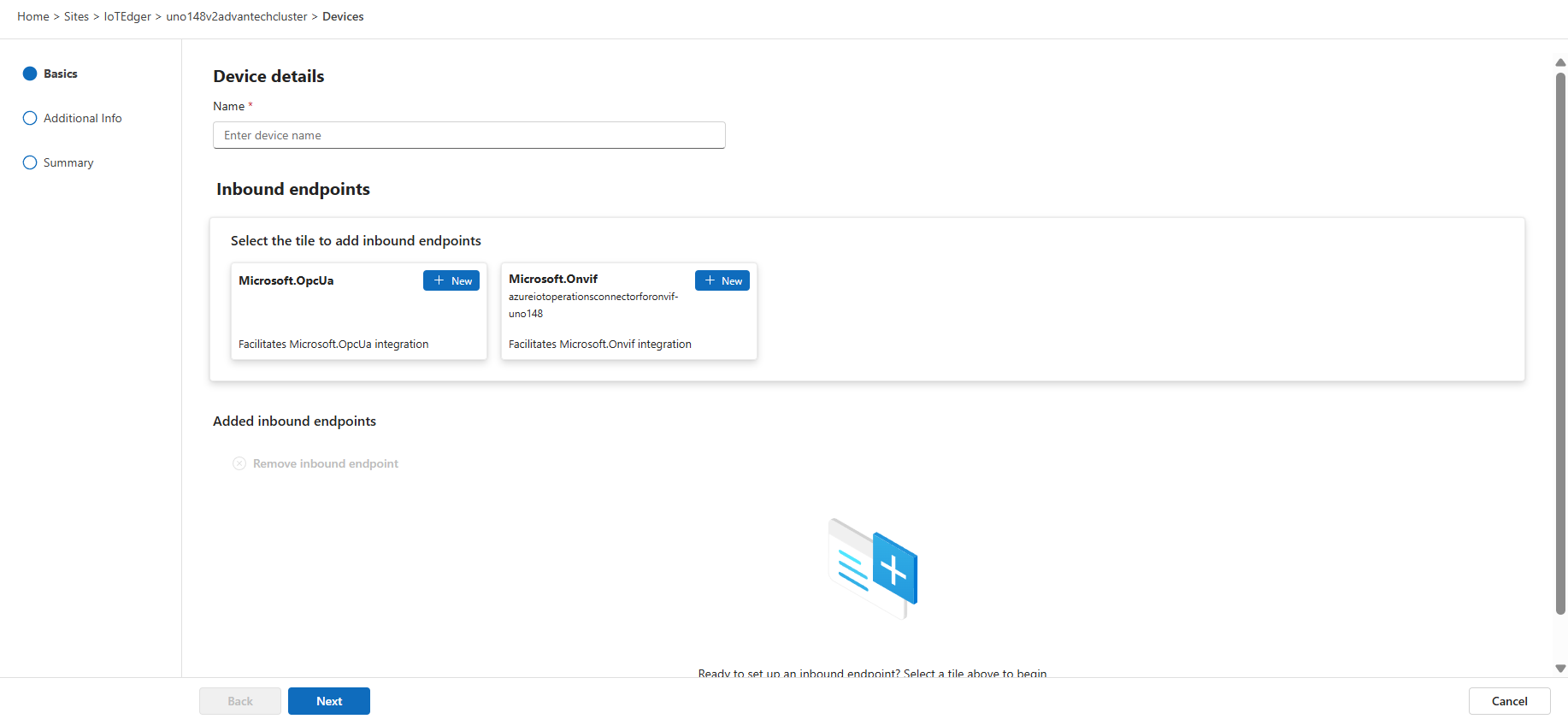 On the last page, a summary is shown with device details and the inbound endpoint we added: